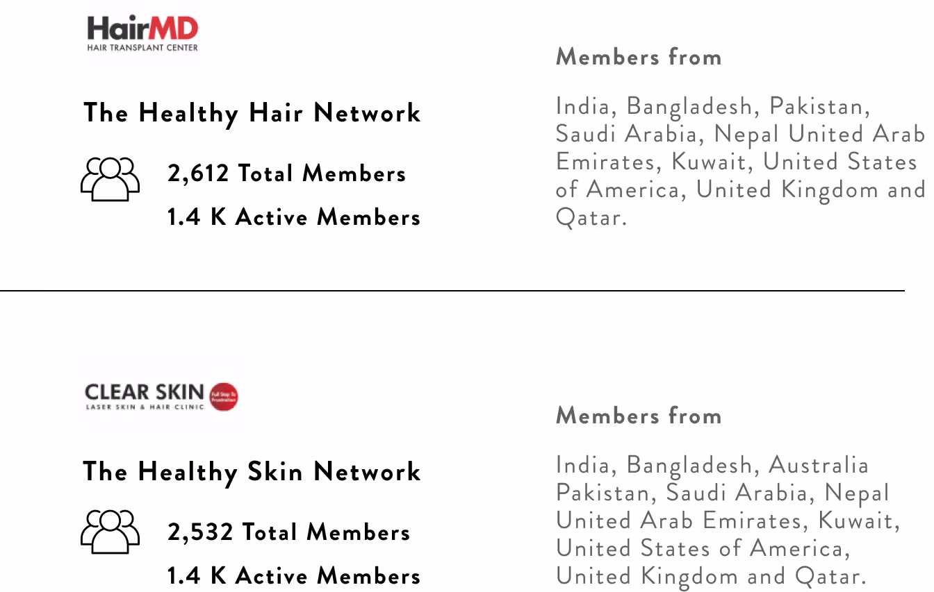 Clear Skin “The Healthy Hair Network” & “The Healthy Skin Network” were the two Facebook Groups for Clear Skin & Hair MD that saw organic growth and engagement.